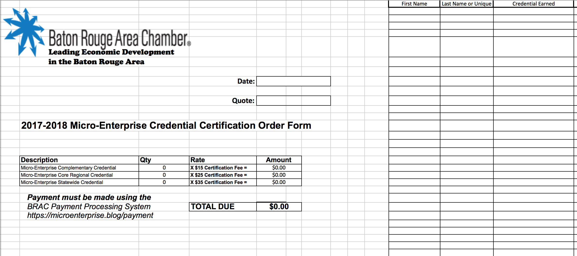 Tab 3: BRAC Micro-Enterprise Credential Certificate Quote